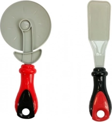 Inclusi la rotella tagliapizza in plastica e una paletta/raschietto con presa facile, ideali per un gioco sicuro e divertente senza bordi taglienti.