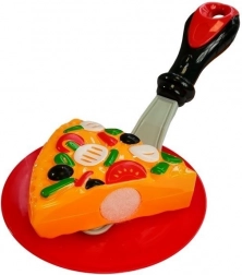 • Gioco di cucina realistico: pizza con velcro, rotella, paletta, posate e piattini