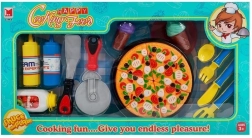 Divertente set per piccoli chef con tutto il necessario per servire la pizza preferita e il dolce gelato. Grazie agli spicchi uniti con il velcro, la pizza si può facilmente “tagliare” con la rotella inclusa e servire sui piattini. Il set include una pizza dal diametro di 16 cm divisa in 6 spicchi, utensili, piattini, gelati e salse – ideale per sviluppare la fantasia e i giochi di cucina. Sicura realizzazione in plastica, taglio con velcro e 20 accessori per un gioco realistico faranno felice ogni bambino.