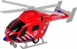 Il nostro elicottero di soccorso è realizzato con materiali plastici resistenti e atossici, garantendo la sua sicurezza e compatibilità con la salute del tuo bambino. L'elicottero è dotato di ali ampiamente distanziate, tre pulsanti che producono effetti sonori e luminosi, e ruote mobili con presa a frizione per un gioco dinamico.