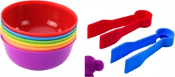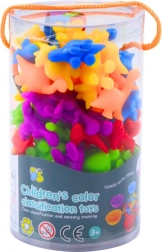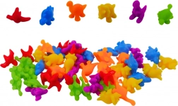 Il set include una vasta raccolta di dinosauri colorati e sei bicchieri dai colori vivaci, dove i bambini possono sistemare i loro dinosauri. Per il gioco è incluso anche una pinzetta speciale, che aiuta i bambini a spostare i dinosauri e classificarli per colore. Questo rinforza le abilità motorie e la coordinazione.