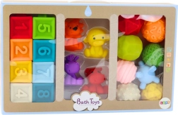 I blocchi educativi morbidi da bagno rappresentano un set innovativo che include 20 parti in gomma colorata. Ciascuno degli otto blocchi è unico con caratteristiche che aiutano a sviluppare le abilità cognitive dei bambini. Con forme e rilievi diversi, i blocchi si uniscono in un'ampia gamma di costruzioni, allenando in modo divertente le abilità manuali e la coordinazione occhio-mano.