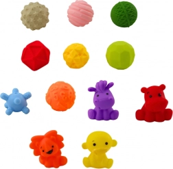 Il set include forme diverse, animali e trame colorate che stimolano lo sviluppo sensoriale nei bambini.
