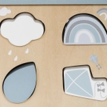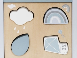- Set di forme: Comprende diverse forme e colori che il bambino può inserire negli appositi fori, aiutando così a riconoscere forme e coordinazione visivo-motoria.