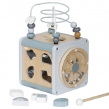 Multicubo in legno è un giocattolo educativo ispiratore progettato secondo il metodo Montessori, che favorisce lo sviluppo dei bambini piccoli. Un cubo pieno di elementi interattivi aiuta a sviluppare le abilità motorie, il pensiero logico e la coordinazione mano-occhio.