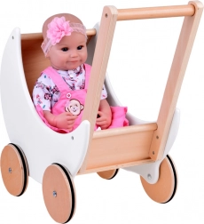 Carrello di legno adorabile per bambole è realizzato in legno naturale, sicuro per i bambini. La sua impugnatura ergonomica è adatta alle piccole mani, supportando lo sviluppo dell'equilibrio. Le ruote in gomma proteggono il pavimento dai graffi e assicurano un funzionamento silenzioso.
