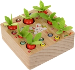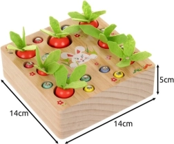 Il giocattolo in legno KRUZZEL 2v1 offre la gioia di apprendere e giocare con un design da giardino colorato. I bambini adoreranno imitare i giardinieri giocando con vermetti magnetici e inserendo carote nei fori giusti. Il gioco favorisce il riconoscimento di forme e colori, sviluppando così le abilità sensoriali.