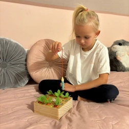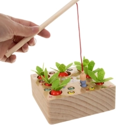 Secondo i principi Montessori, i bambini possono immergersi nel ruolo di giardiniere creativo e apprendere in modo divertente come piantare e raccogliere carote o giocare con la canna da pesca magnetica. Questo prodotto è ideale per lo sviluppo della fantasia e della creatività dei bambini.