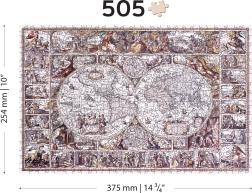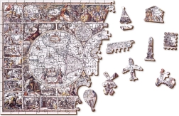 Scoprite il fascino dei puzzle con forme uniche: il puzzle in legno WOODEN CITY “Mappa dell’Età delle Scoperte” offre 505 pezzi con dettagli evidenziati al laser, alcuni a forma di animali, edifici e oggetti. È double-face 2 in 1 per comporre secondo l’immagine o il profilo dei pezzi, ha bordi lisci, è realizzato in robusto pannello HDF spesso 3–4 mm ed è completamente senza plastica.