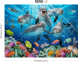 Concediti un'esperienza unica con un puzzle dal motivo di delfini allegri. Grazie ai pezzi sagomati speciali, alcuni dei quali hanno la forma di animali e possono fungere anche da piccole figurine, otterrai un montaggio non convenzionale pieno di sorprese. La lavorazione laser precisa garantisce dettagli nitidi del motivo e bordi perfettamente lisci senza schegge.