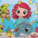Bellissimo puzzle per bambini con il motivo di una sirena e di animaletti del mondo sottomarino. Contiene 30 pezzi grandi per un facile assemblaggio, l'immagine finale misura 29 × 18 cm. Ideale come primo puzzle per i bambini, fornito in una scatola regalo con manico per un trasporto comodo.