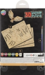 Intraprendi un percorso creativo con il puzzle 3D in legno MOXY a forma di maestosa aquila. I singoli pezzi si incastrano perfettamente, quindi per il montaggio non servono colla né attrezzi. Una volta assemblato, potrai decorare facilmente il modello con le vernici incluse e creare così una decorazione originale.