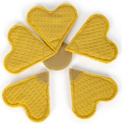 Cinque pezzi di stoffa uniti con velcro formano un’elegante “fiore” – perfetto per servire e allenare la motricità fine.