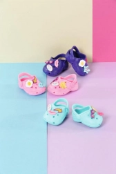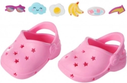Adorabili sandali in gomma per la bambola BABY born 43 cm in tre varianti di colore, perfetti per ogni piccola stilista. Grazie alle spille decorative rimovibili, i bambini possono personalizzare facilmente le scarpine e cambiarne l’aspetto. Leggerissimi, comodi e ideali per avventure estive, per “l’acqua” e per la sabbiera. Adatti ai bambini dai 3 anni.