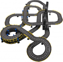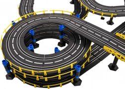 Grande pista da corsa in scala 1:43 con due automobiline radiocomandate per bambini dai 3 anni in su. I singoli elementi di costruzione permettono di assemblare una pista con curve strette, spirali e tratti rettilinei, il tutto per il massimo divertimento e per aumentare l’emozione del gioco. Questo set unico è il giocattolo ideale per i piccoli appassionati di corse automobilistiche. La pista è dotata di contatore dei giri. Alimentazione elettrica 220 V - 50 Hz. |