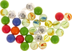 Il set include 33 biglie, di cui 5 lampeggianti con LED colorati. Gli effetti luminosi invogliano a provare nuovi percorsi e prolungano il tempo di gioco.