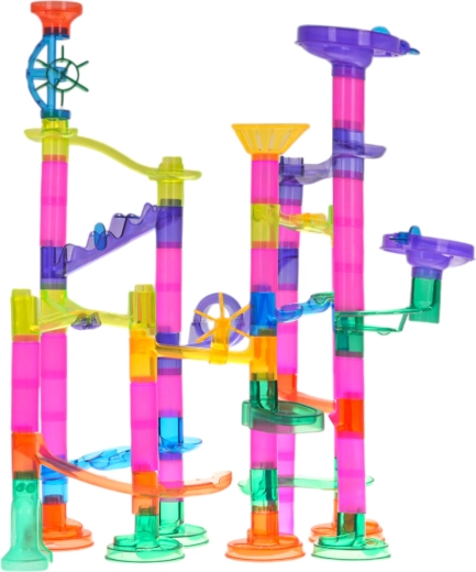 Con 105 pezzi potrai costruire percorsi semplici e complessi con spirali, imbuti e tunnel. I bambini sviluppano la fantasia e imparano a risolvere problemi progettando piste stabili.