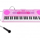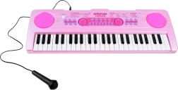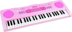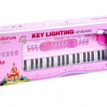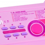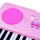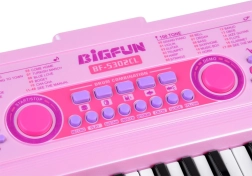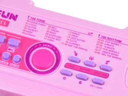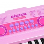 Tastiera rosa per bambini BIGFUN con tasti retroilluminati che rende l’apprendimento della musica divertente per i piccoli musicisti. Offre 49 tasti, 100 suoni, 100 ritmi, 50 brani demo, registrazione e riproduzione, regolazione di tempo e volume. Inclusi microfono, alimentazione USB e ingressi MIC e AUX.