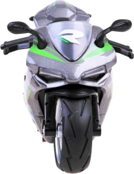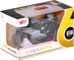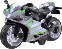 Motocicletta con fusioneżg è un giocattolo per ogni appassionato di veicoli żd grandi żd su due ruote. Costruito in metallo con dettagli in plastica. Grandi ruote con pneumatici in gomma migliorano l'aderenza. Il bonus è l'ammortizzatore nella ruota posteriore. Il motore funziona quando si preme sulla molla flessibile del sistema żyn. Basta posizionare la motocicletta su una superficie compatibile, tirarla indietro e lasciarla andare! Il conducente del sigaro andrà avanti! La motocicletta del sigaro riprodotta realisticamente offrirà tanto divertimento a ogni bambino. La motocicletta è prodotta con cura ed esteticamente.