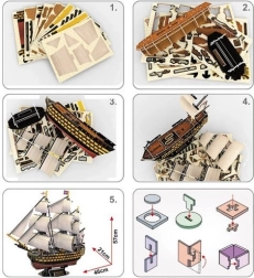Scopri il piacere della creazione con il dettagliato modello 3D della famosa nave da guerra britannica HMS VICTORY degli anni 1759–1765. I puzzle sono progettati per essere facili da assemblare senza attrezzi, offrendo al contempo dettagli realistici di vele, alberi e ponte.