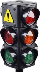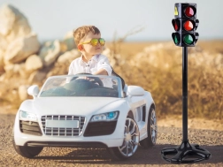 Segnalazione stradale luminosa con 3 luci in rosso, arancione e verde, con effetto dinamico. Sarà un attributo indispensabile per l’insegnamento delle regole del traffico stradale, del movimento sicuro sulla strada e dell’attraversamento dei passaggi pedonali.