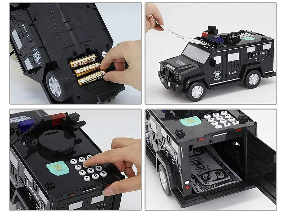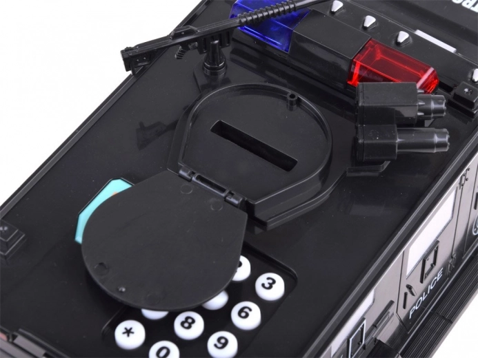 Salvadanaio per bambini con password e impronta digitale - auto della polizia – Nero