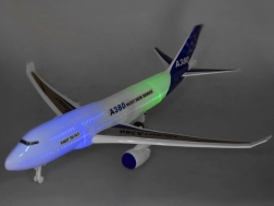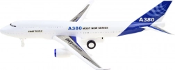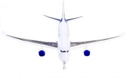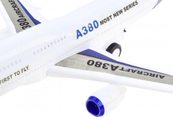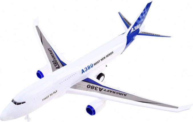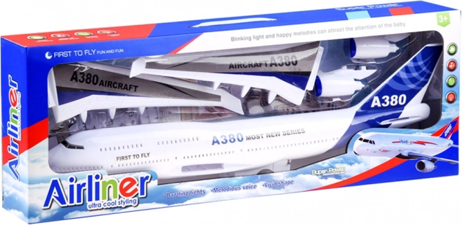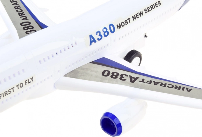 L’aereo è realizzato in plastica di alta qualità, con grande cura per i dettagli. La fusoliera, le ali e le superfici di coda sono decorate con adesivi colorati. Il veicolo è dotato di trazione, grazie alla quale può muoversi sull’aeroporto e giocare lungo la pista. L’interruttore è posizionato nel carrello di atterraggio e attiva gli effetti sonori e luminosi del giocattolo. All’avvio si sentono i suoni di avviamento, atterraggio e il funzionamento dei motori. I suoni sono accompagnati dal lampeggio delle luci all’interno della cabina.
