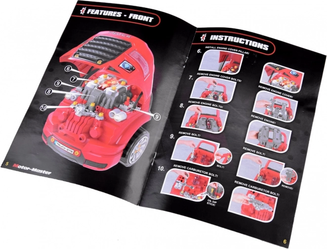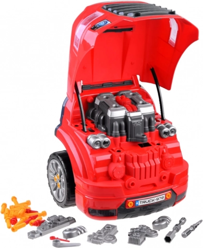 Auto con motore da smontare. Officina per piccoli meccanici con 61 pezzi che offrirà a ogni giovane meccanico tantissimo lavoro. Il giocattolo completamente funzionante è realizzato in plastica nei colori rosso e nero e garantisce un grande divertimento.
