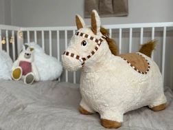 Il cavallino in peluche è un compagno ideale per saltare, giocare e coccolare. La superficie morbida e vellutata è piacevole al tatto, mentre la solida struttura rimbalzante aiuta i bambini ad allenare stabilità, motricità e forza muscolare. Le orecchie fungono da maniglie sicure e il fischietto tra le orecchie aggiunge un elemento di divertimento al gioco.