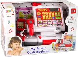 Grazie a una calcolatrice funzionante e un cassetto apribile con soldi, la cassa ricorda una vera durante il gioco di negozio.
