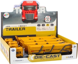 Il camion con rimorchio giallo è un giocattolo realistico progettato per i piccoli appassionati di veicoli da carico. Il modello è realizzato in scala 1:24 e grazie alla sua realizzazione dettagliata ricorda un vero camion da costruzione. Il camion è dotato di un meccanismo a molla che, una volta spostato avanti o indietro, si muove dolcemente con la propria forza. Premendo la cabina si attivano effetti luminosi e sonori che aggiungono autenticità e divertimento al gioco.
