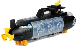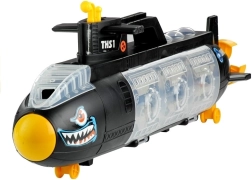 Il giocattolo è composto da una struttura nera combinata con dettagli gialli e adesivi, e da una parte trasparente con scomparti per i veicoli. Una sezione è già riempita: in ogni scomparto si trova un veicolo interessante che sicuramente renderà il gioco più vario. L’altra sezione dello smistatore è vuota, così il bambino potrà riporre le sue macchinine preferite in un unico posto. Il giocattolo è montato su piccole ruote girevoli, quindi si può anche giocare facendolo scorrere sul pavimento. Il sottomarino presenta molti dettagli che danno l’impressione di una piccola copia di una macchina a grandezza naturale. È possibile osservare l’elica di propulsione, posizionata alla fine della struttura, e anche il periscopio, che permette di vedere cosa succede sopra la superficie dell’acqua. Lo smistatore trasparente è decorato con oblò, il che ha un aspetto fantastico. Il giocattolo principale, insieme ai veicoli inclusi, è realizzato in plastica resistente e soprattutto robusta, che resiste ai danni che possono verificarsi durante il gioco.