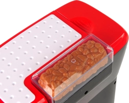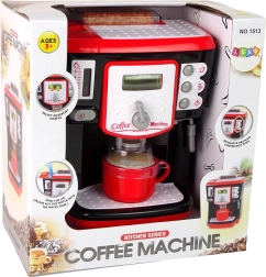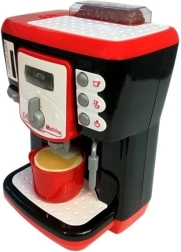 La macchina da caffè nero-rossa è un giocattolo davvero interessante. Nell’aspetto richiama i moderni distributori automatici, quindi può stare senza problemi in cucina accanto al suo originale. Il giocattolo è dotato di un pulsante per selezionare i tipi di caffè da preparare: Cappuccino, Latte e Macchiato. Sul lato sinistro della macchina si trova un serbatoio: dopo averlo attivato con il pulsante, l’acqua inizia a uscire dall’automatica! Sul lato destro, invece, ci sono pulsanti che simulano le diverse modalità della macchina da caffè. Il set è inoltre dotato di un’imitazione di chicchi di caffè nel serbatoio e di una tazzina che può essere riempita con la macchina.
