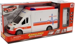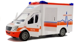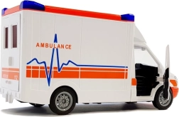 Ambulanza riprodotta in modo ideale. Il veicolo è curato in ogni dettaglio, l’interno è dotato di tutti gli elementi di un vero mezzo, come volante, cruscotto, sedili. Il veicolo dispone di effetti sonori e luminosi attivati da pulsanti posti sul tetto. L’auto ha trazione a retrofrizione. Il veicolo apre le porte laterali e posteriori e ha il tetto rimovibile. Inoltre, nella confezione sono incluse barelle di soccorso pieghevoli e rimovibili. L’auto è leggera e ben rifinita, alimentata a batterie incluse nella confezione. Il veicolo ha ruote in gomma. Un’ambulanza sensazionale per il trasporto dei pazienti o altri compiti durante le operazioni di soccorso.