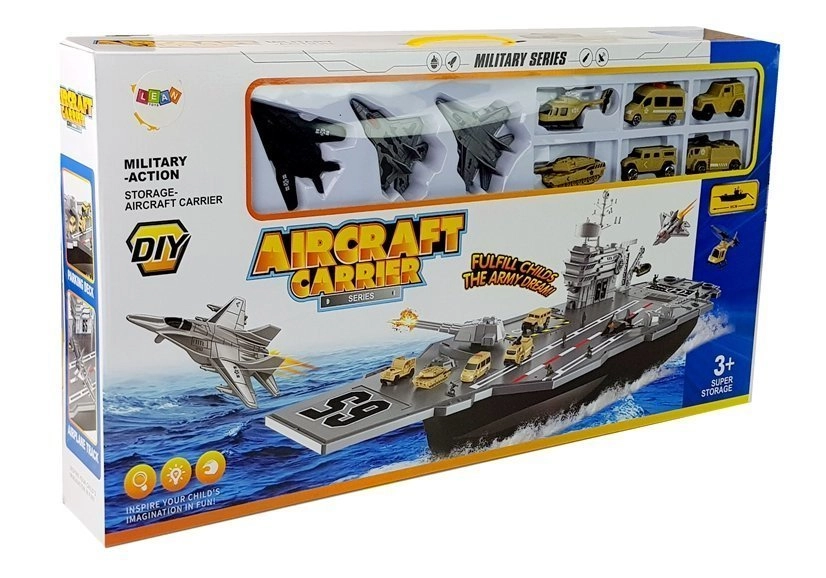 Presentiamo una portaerei per bambini che amano giocare ai soldati e allo stesso tempo hanno una passione per le navi, perché è la parte migliore del set. Il set sviluppa immaginazione, creatività e permette ai piccoli soldati di creare piani di battaglia. Provatela voi stessi: questo interessante giocattolo vi porterà nel mondo della marina militare. Cannoni mobili e pezzi d'artiglieria sul ponte rendono il divertimento ancora più realistico. Il giocattolo si distingue per le sue dimensioni: in lunghezza misura fino a 86 cm.