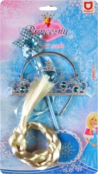 Diventa una magica principessa invernale con questo meraviglioso set, che include una corona, una bacchetta e una elegante treccia in sfumature di blu.