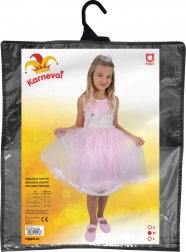 - Design: gonna rosa con petali e perline bianche, corpetto con motivo del cigno