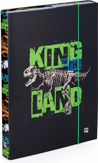 Elegante box per quaderni con motivo dinosauro, ideale per l’uso quotidiano a scuola e a casa. La superficie laminata garantisce protezione contro i danni e una facile manutenzione, mentre il robusto elastico mantiene tutto ben saldo.