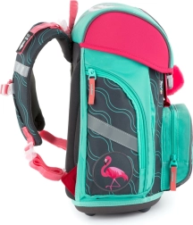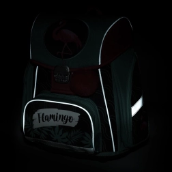 Cartella scolastica leggera ed ergonomica con motivo fenicottero, dotata di schienale anatomico, spallacci larghi e imbottiti e fondo rigido per un trasporto sicuro del materiale scolastico. Grazie agli elementi riflettenti il bambino è più visibile e il vano capiente con tasche pratiche garantisce un'organizzazione ordinata degli accessori per la 1ª–2ª classe.