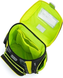 L'interno luminoso e i numerosi scomparti consentono una facile organizzazione del materiale scolastico e degli effetti personali.