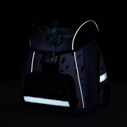 Lo zaino contiene un ampio scomparto che offre spazio sufficiente per tutti gli strumenti scolastici. Il fondo solido protegge il contenuto dall'inclinazione o dalla fuoriuscita. La tasca frontale è collocata convenientemente per una facile conservazione delle merende e la fibbia di sicurezza aggiunge sicurezza. Non mancano numerosi elementi riflettenti per una migliore visibilità in condizioni di scarsa illuminazione.