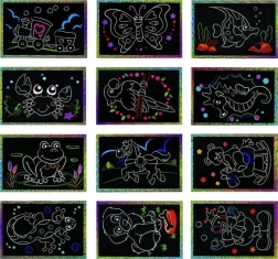 Questo set di immagini da grattare è una scelta ideale per i primi lavoretti creativi. Il semplice principio di rimuovere l’intero motivo senza dettagli complessi è facile da capire per i bambini, che vedono subito il risultato: bellissime immagini glitterate e colorate con un effetto brillante.