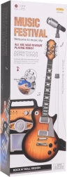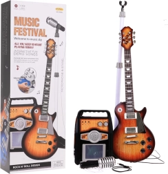 - chitarra elettrica (marrone), microfono su supporto, amplificatore, cavo jack, tracolla