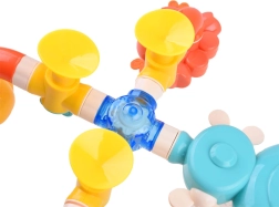 Il giocattolo è dotato di ventose robuste per un fissaggio stabile su superfici lisce (piastrelle, vasca). I componenti in plastica colorata e sicura invitano all’esplorazione e sviluppano motricità fine, logica e creatività.
