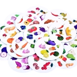Immagini accattivanti di carote, piselli, limoni o uva mantengono alta l’attenzione e aiutano a riconoscere forme e colori.