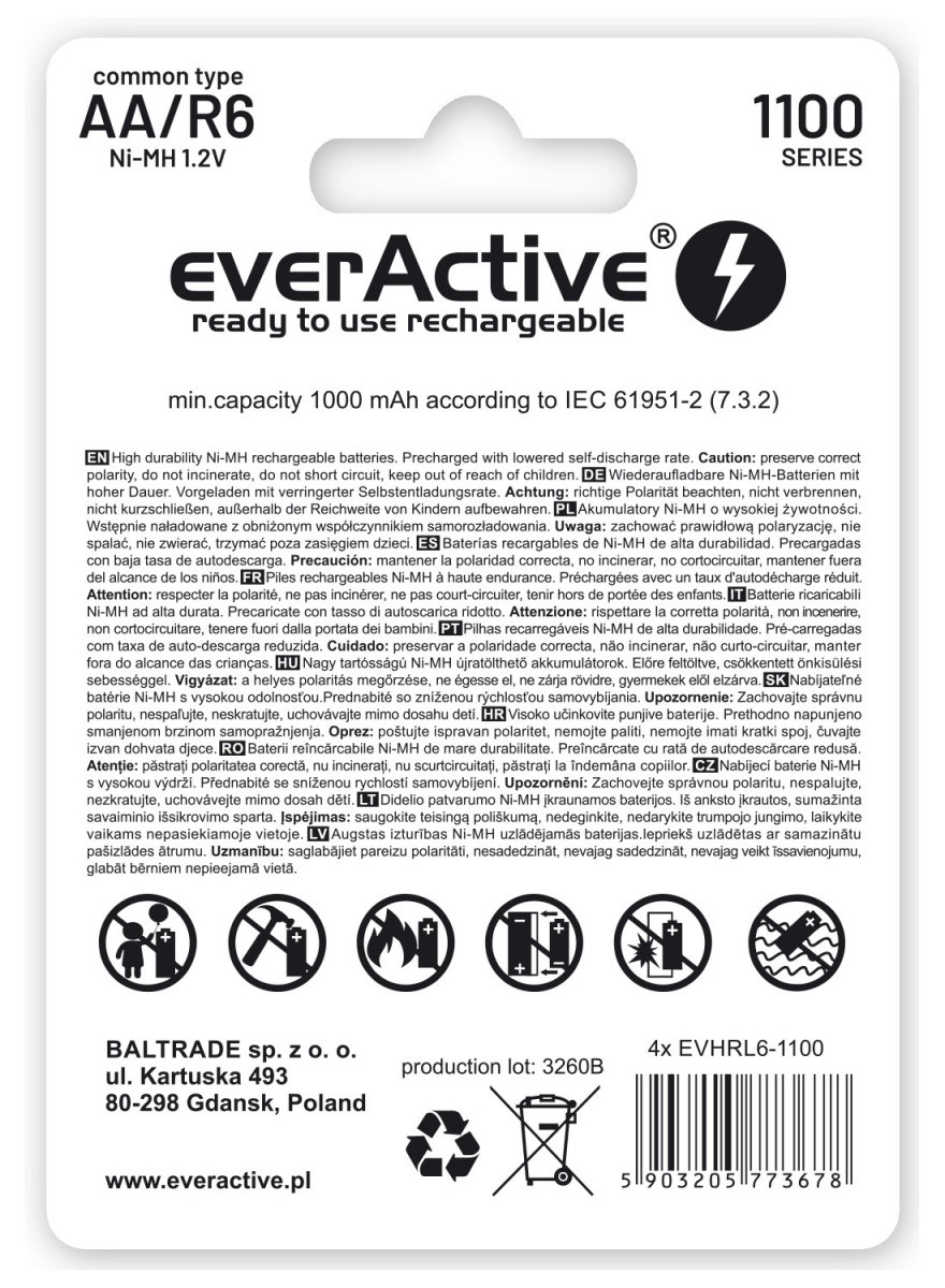Scopri gli innovativi accumulatori R6 AA 1100 mAh del marchio EverActive, che fanno parte della serie Infinity Line. Queste batterie ricaricabili sono state sviluppate con tecnologia "ready to use", il che significa che sono pre-caricate e pronte per l'uso immediato: