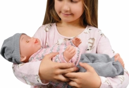 Braccia e gambe morbide e snodate e graziosi vestitini in toni rosa-grigio favoriscono il gioco di cura. La dimensione di 43 cm è ideale per le piccole mani dei bambini.