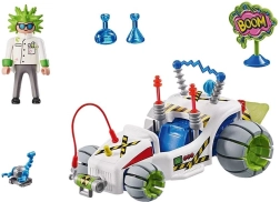 Parti in pole position con il professore strampalato e il suo go-kart scientifico! Grazie al meccanismo a retrocarica (pull-back) il veicolo scatta in avanti, mentre provette, trazione “a razzo” e apparecchiatura elettrica aggiungono a ogni gara un tocco di fantasia. La carrozzeria futuristica può essere personalizzata con vari accessori per creare una macchina da corsa unica.