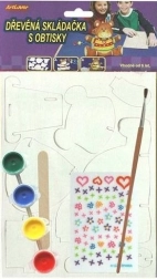 - Pezzi in legno, colori, pennello, decalcomanie a pressione