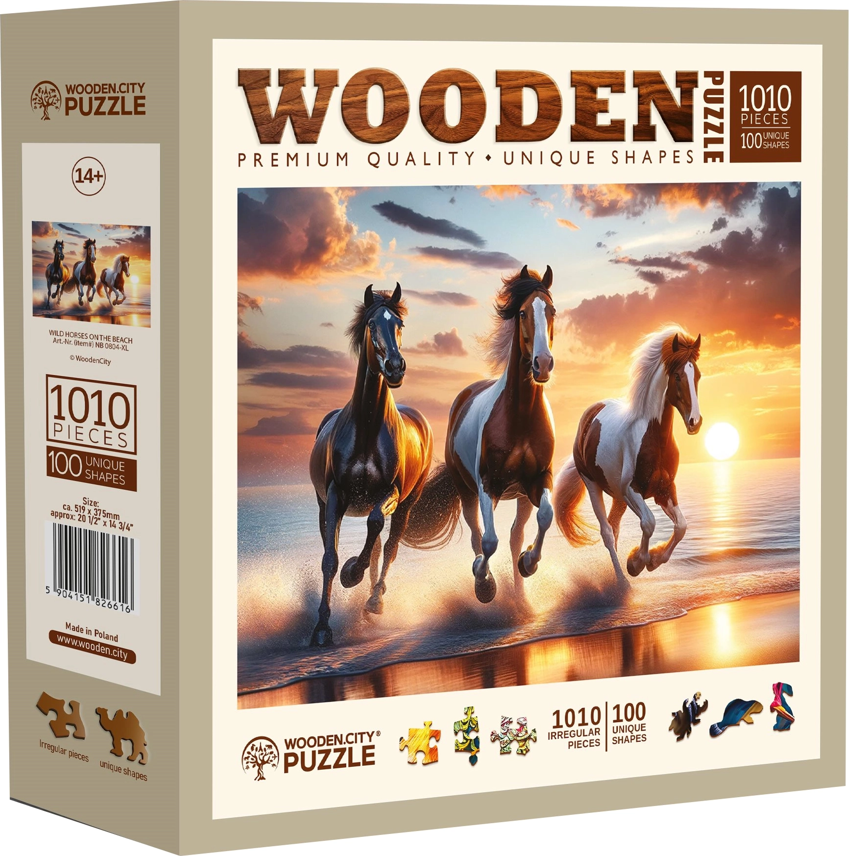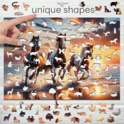 Entra nel mondo dei puzzle in legno di alta qualità con il motivo dei cavalli selvaggi sulla spiaggia. WOODEN CITY offre pezzi tagliati al laser in robusto pannello HDF di spessore 3–4 mm, caratterizzati da bordature lisce e lunga durata. Parte dei pezzi è a forma di animali e, grazie ai dettagli fini, può fungere anche da piccole figurine.